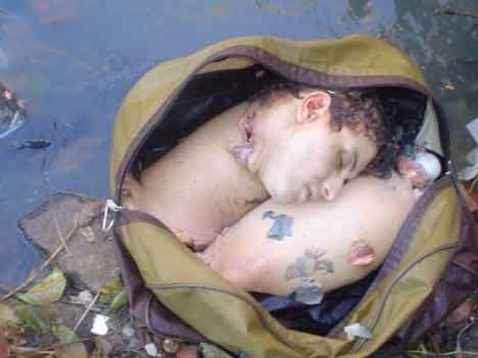 O corpo de Íris, moradora da Rocinha, foi encontrado na manhã de sábado por funcionários da Rio Águas, órgão da prefeitura, quando faziam limpeza no canal. A morte teria sido causada durante uma briga dos dois possivelmente motivada pelo fim do casamento. O corpo, que estava com marcas de agressão e vários cortes, foi reconhecido por um colega de trabalho e uma amiga da vítima, no Instituto Médico-Legal. A amiga afirmou à polícia ter visto o ex-marido de Iris, na sexta-feira, na Rocinha, carregando a mala em que a vítima foi encontrada.